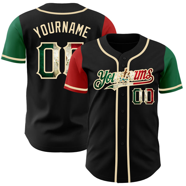 Custom Black Vintage Mexican Flag Kelly Green Red-City Cream Authentic Two Tone Baseball Jersey