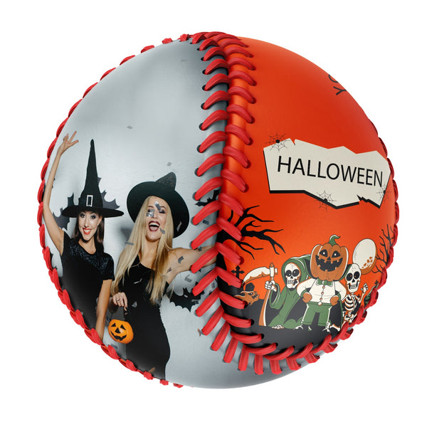 Personalized Orange Happy Halloween Witch Photo Baseballs