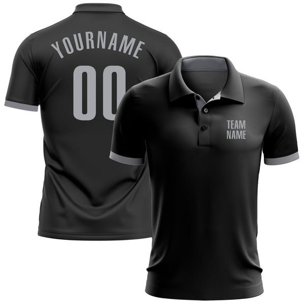 Custom Black Powder Blue-Gold 3D Gradient Fashion Performance Polo Shirt