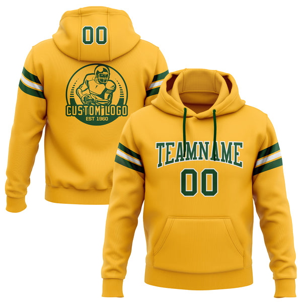 Custom Stitched Gold Green-White Football Pullover Sweatshirt Hoodie