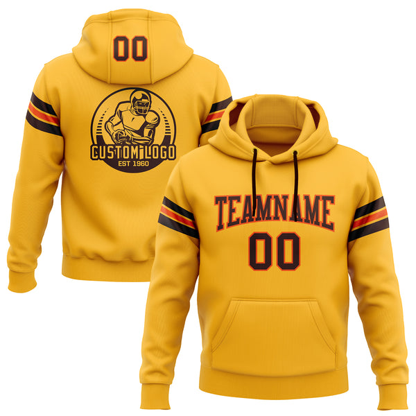 Custom Stitched Gold Brown-Orange Football Pullover Sweatshirt Hoodie