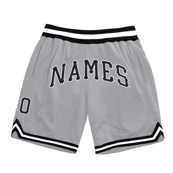 Custom Gray Black-White Authentic Throwback Basketball Shorts