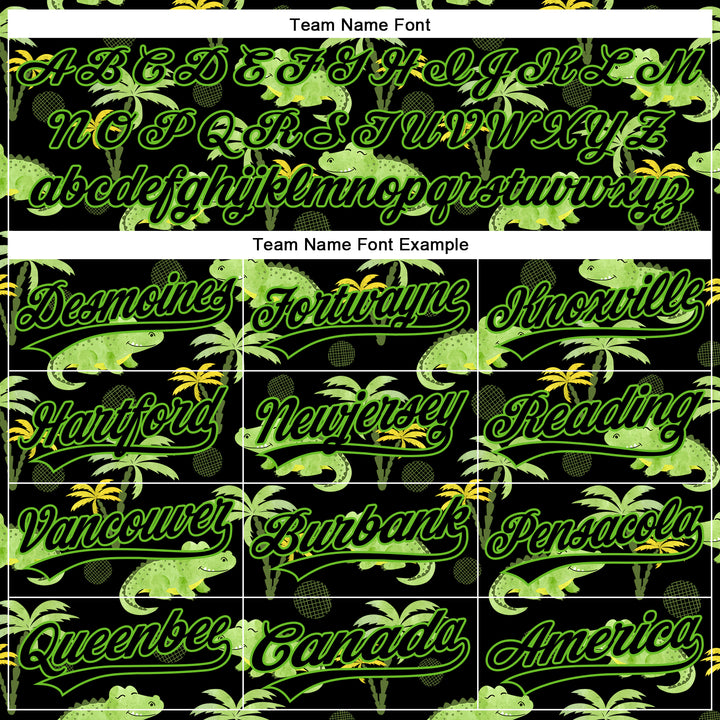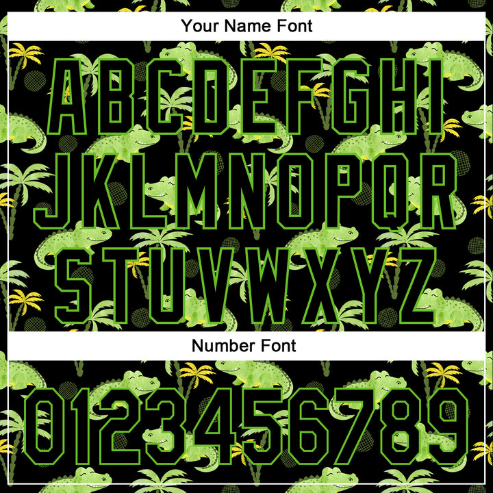 Custom Black Aurora Green 3D Pattern Design Crocodile And Tropical Hawaii Palm Trees Authentic Baseball Jersey