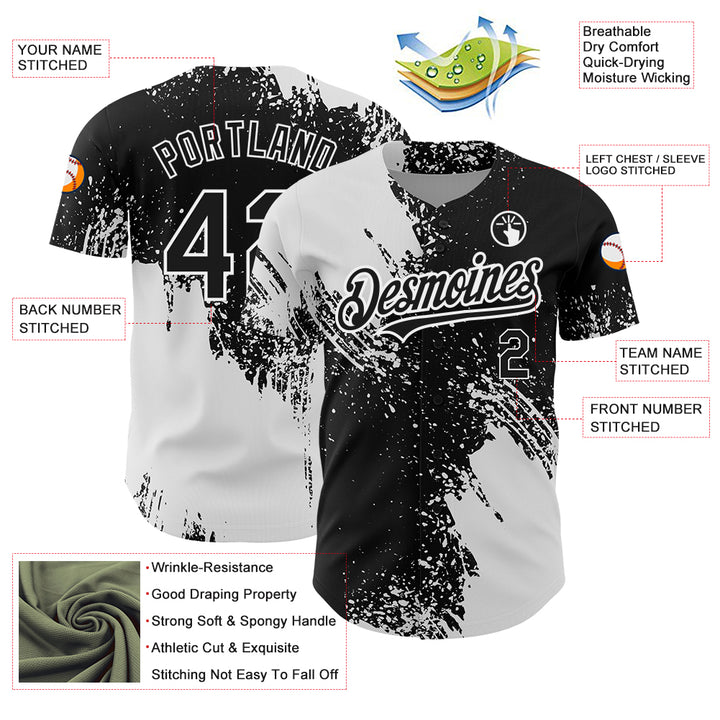 Custom Black White 3D Pattern Design Abstract Brush Stroke Authentic Baseball Jersey