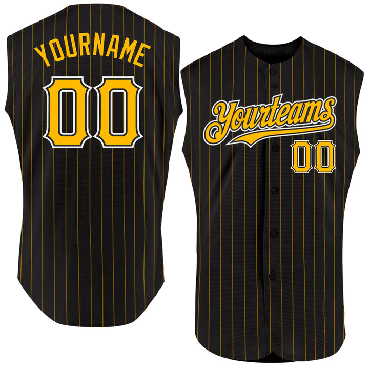 Custom Black Gold Pinstripe White Authentic Sleeveless Baseball Jersey