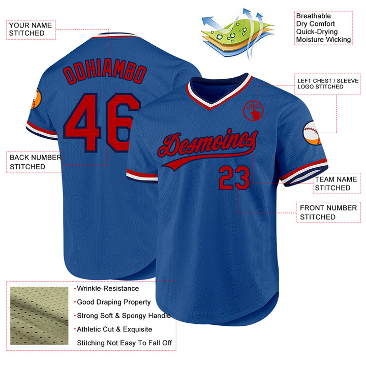 Custom Blue Red-Navy Authentic Throwback Baseball Jersey