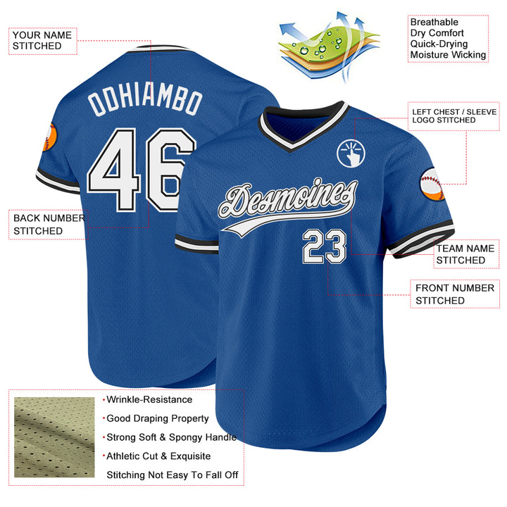 Custom Blue White-Black Authentic Throwback Baseball Jersey