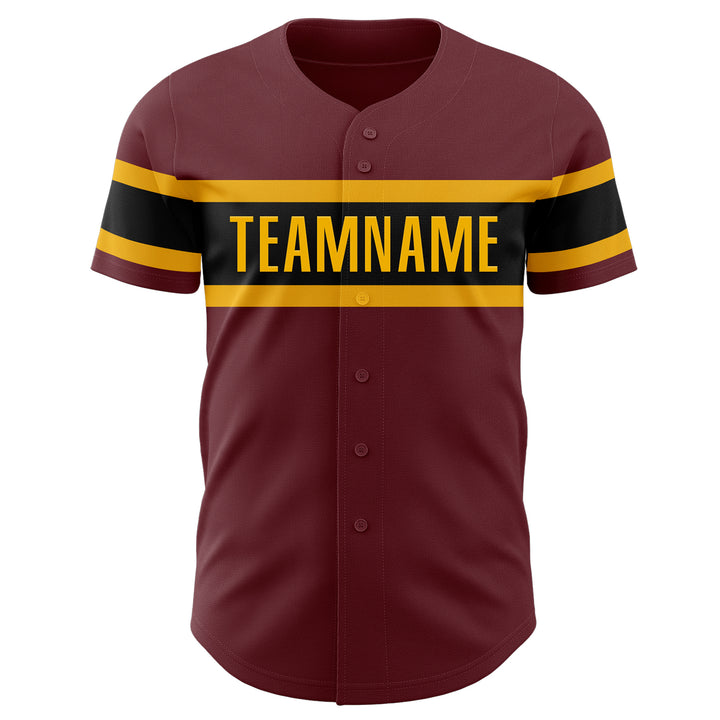 Custom Burgundy Black-Gold Authentic Baseball Jersey