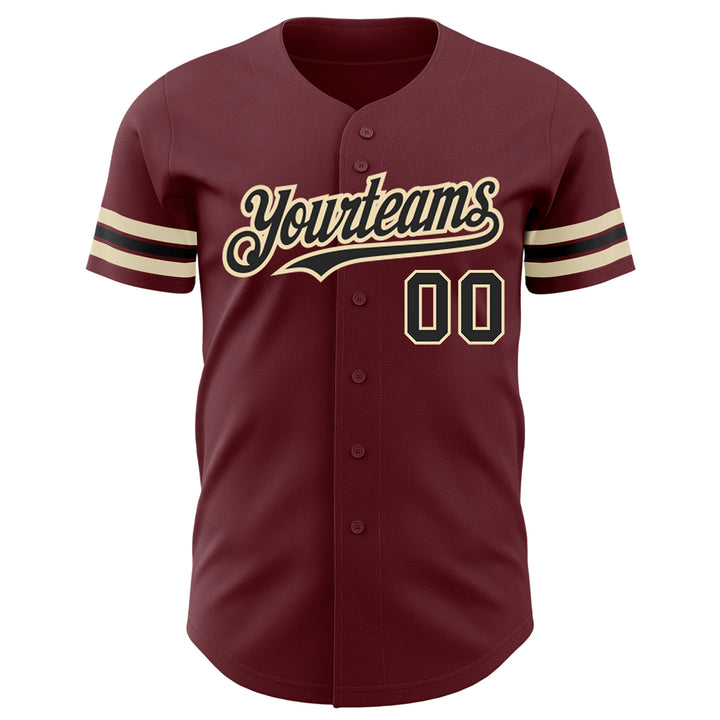 Custom Burgundy Black-City Cream Authentic Baseball Jersey