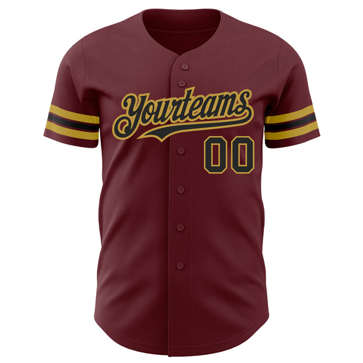 Custom Burgundy Black-Old Gold Authentic Baseball Jersey