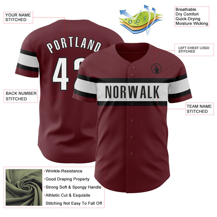 Custom Burgundy White-Black Authentic Baseball Jersey