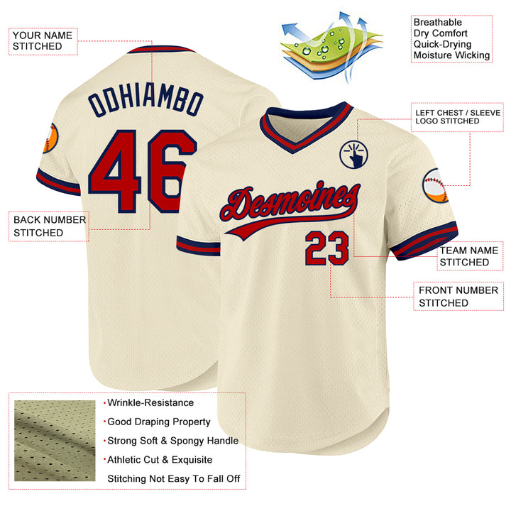 Custom Cream Red-Navy Authentic Throwback Baseball Jersey