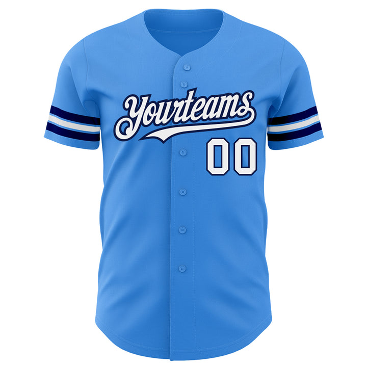 Custom Electric Blue White-Navy Authentic Baseball Jersey