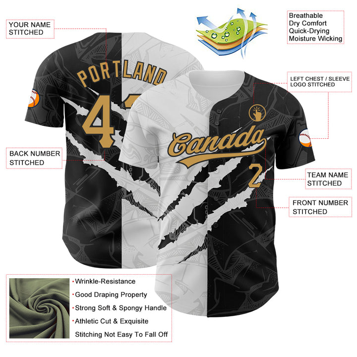Custom Graffiti Pattern Old Gold-Black 3D Scratch Authentic Baseball Jersey