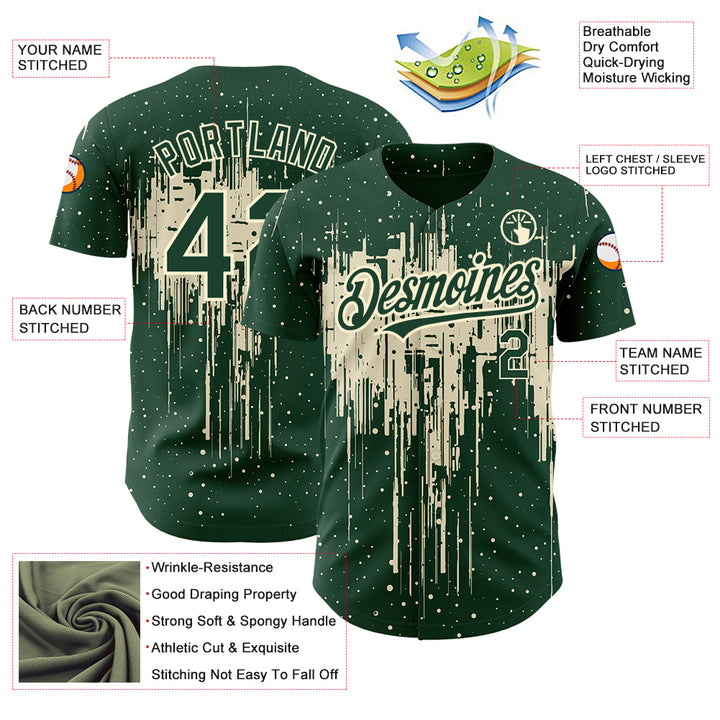 Custom Green Cream 3D Pattern Design Dripping Splatter Art Authentic Baseball Jersey