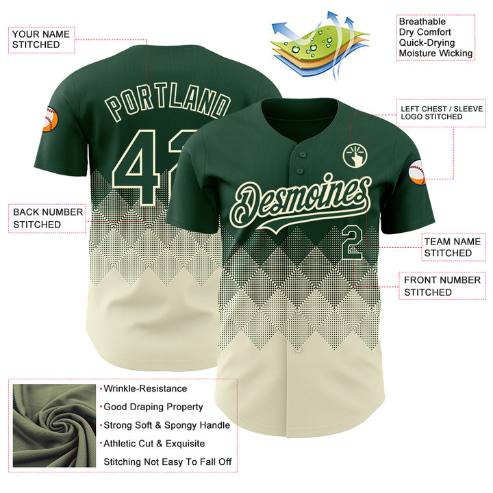 Custom Green Cream 3D Pattern Design Gradient Square Shapes Authentic Baseball Jersey