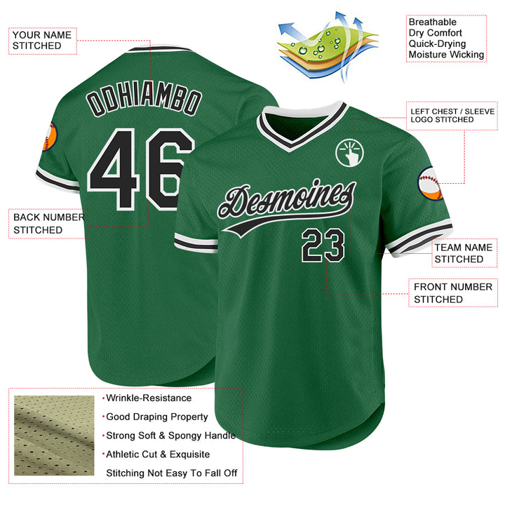 Custom Kelly Green Black-White Authentic Throwback Baseball Jersey