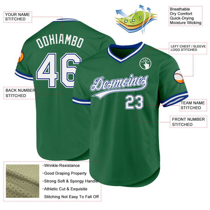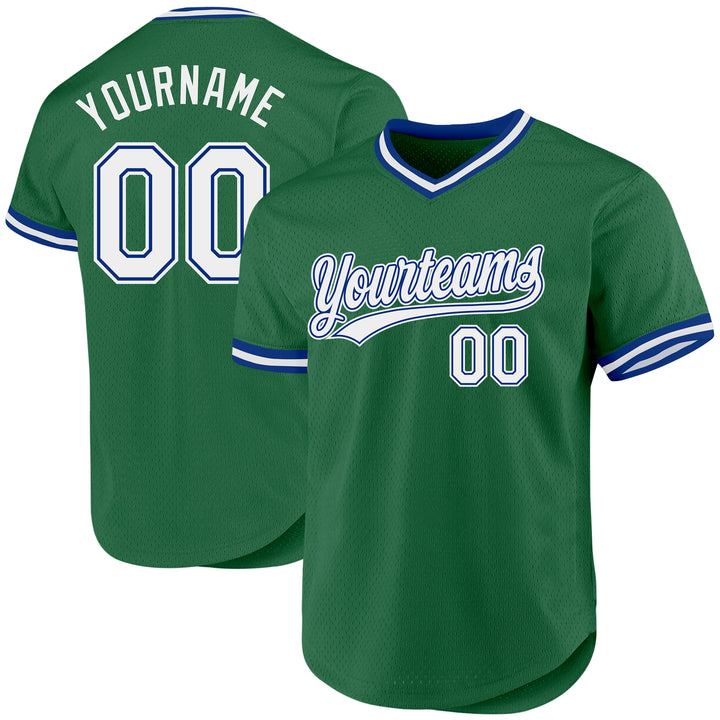 Custom Kelly Green White-Royal Authentic Throwback Baseball Jersey