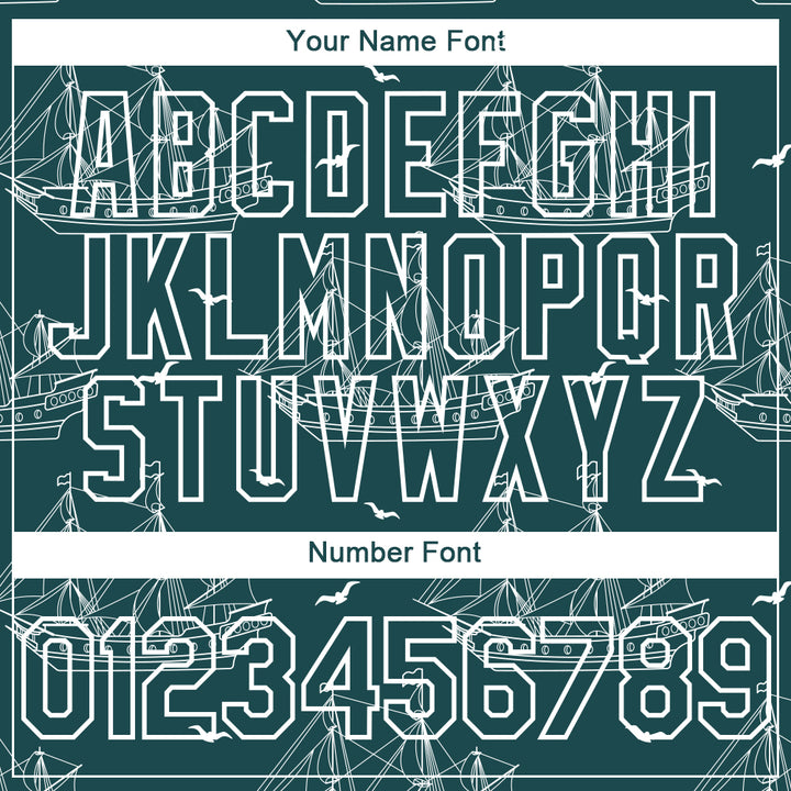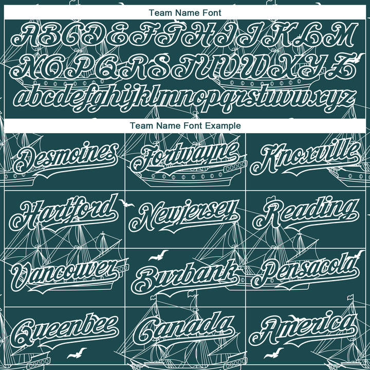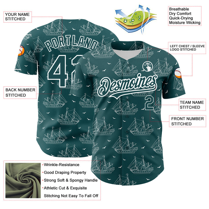 Custom Midnight Green White 3D Pattern Design Ship Frigate With Seagulls Authentic Baseball Jersey