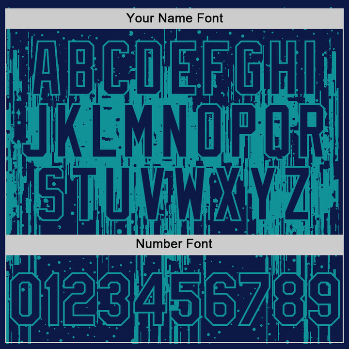 Custom Navy Teal 3D Pattern Design Dripping Splatter Art Authentic Baseball Jersey