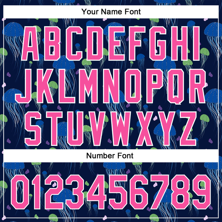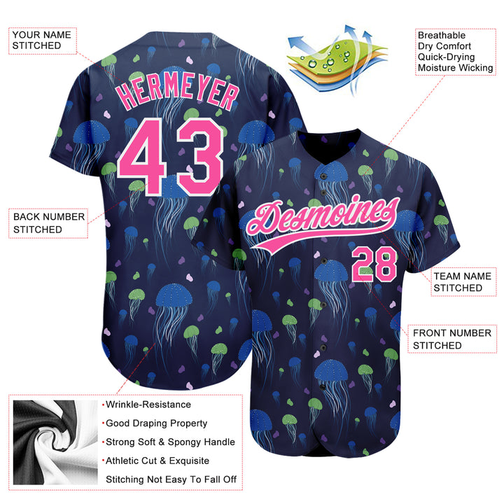 Custom Navy Pink-White 3D Pattern Design Jellyfish Authentic Baseball Jersey