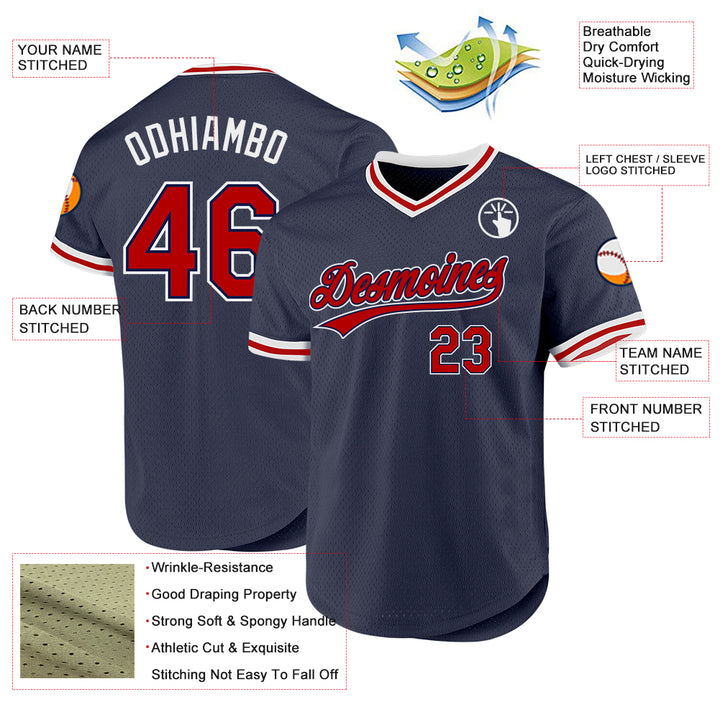 Custom Navy Red-White Authentic Throwback Baseball Jersey