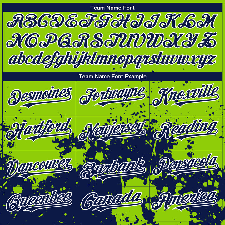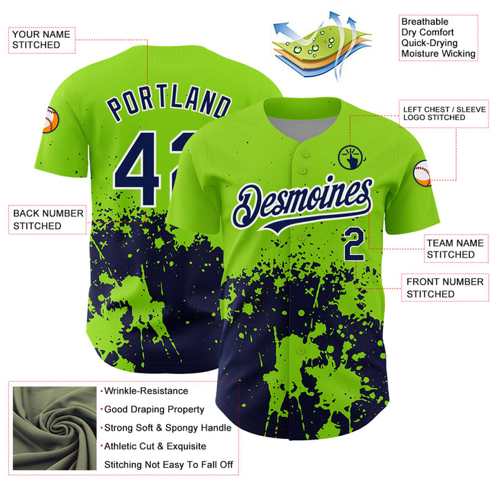 Custom Neon Green Navy-White 3D Pattern Design Abstract Splash Grunge Art Authentic Baseball Jersey