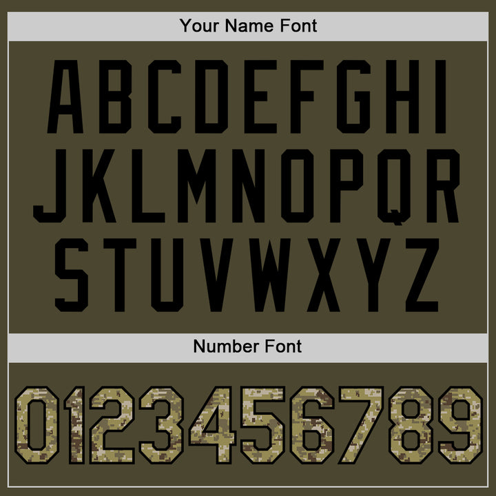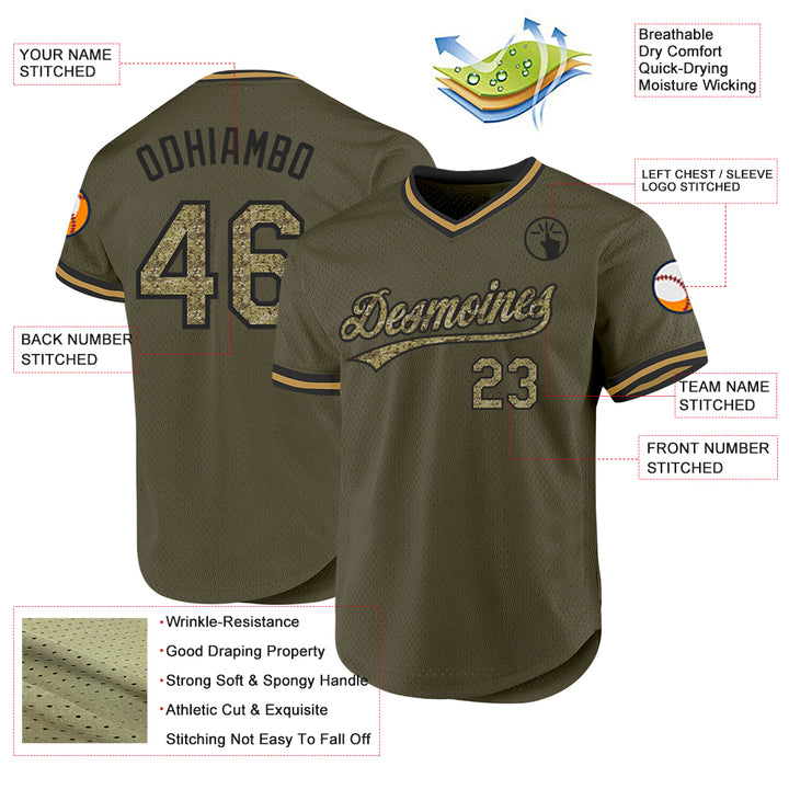 Custom Olive Camo Black-Old Gold Authentic Throwback Salute To Service Baseball Jersey
