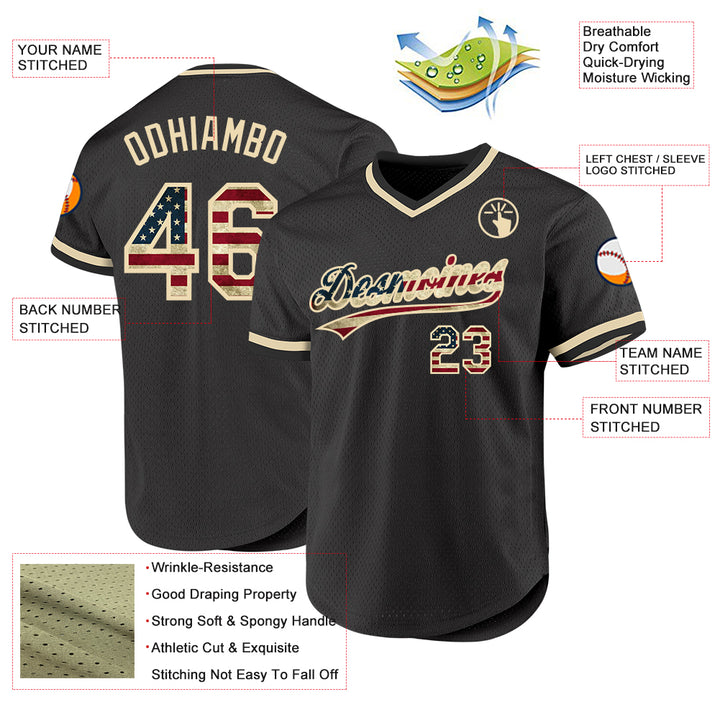 Custom Olive Vintage USA Flag Cream-Black Authentic Throwback Salute To Service Baseball Jersey