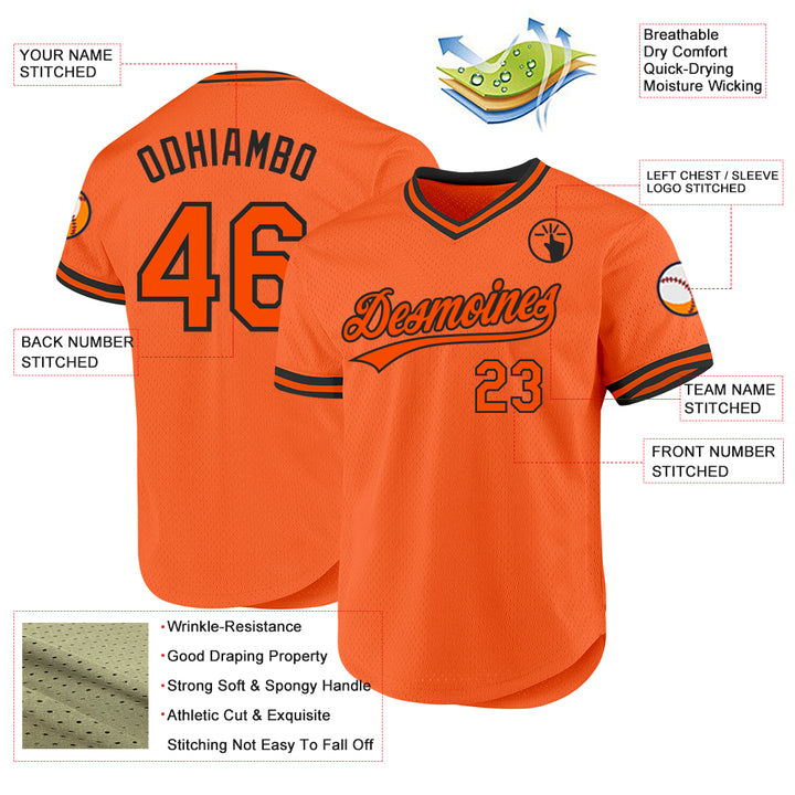 Custom Orange Black Authentic Throwback Baseball Jersey