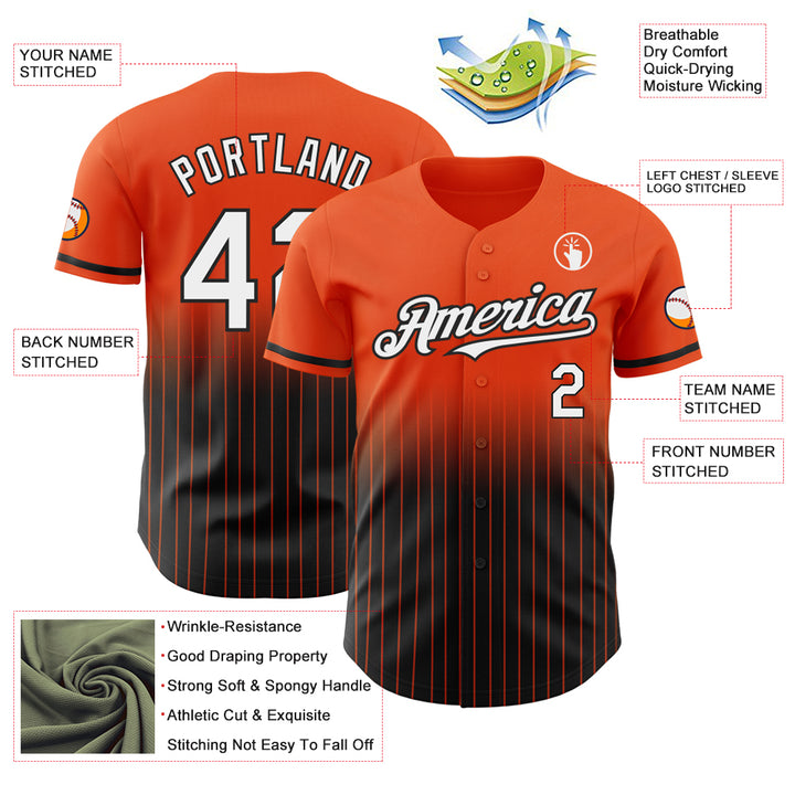 Custom Orange Pinstripe White-Black Authentic Fade Fashion Baseball Jersey