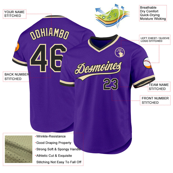 Custom Purple Black-Cream Authentic Throwback Baseball Jersey
