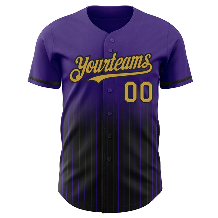 Custom Purple Pinstripe Old Gold-Black Authentic Fade Fashion Baseball Jersey