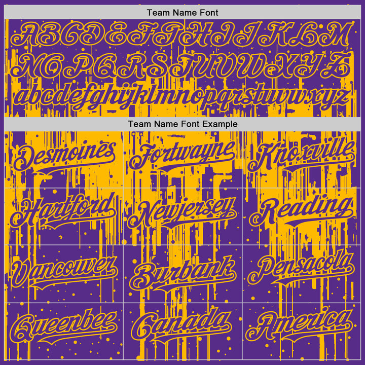 Custom Purple Gold 3D Pattern Design Dripping Splatter Art Authentic Baseball Jersey