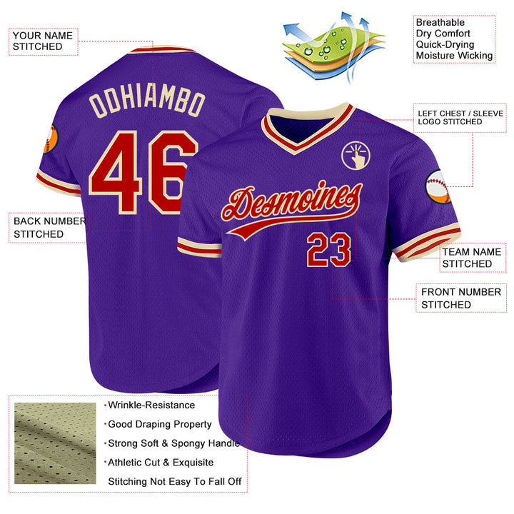 Custom Purple Red-Cream Authentic Throwback Baseball Jersey