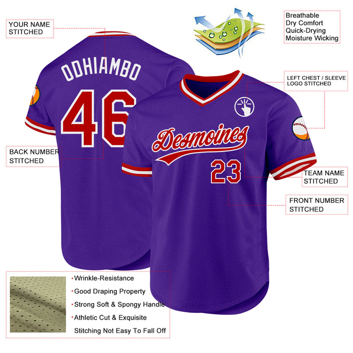Custom Purple Red-White Authentic Throwback Baseball Jersey