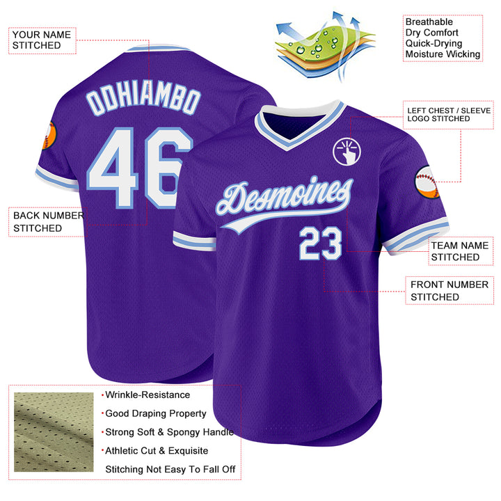 Custom Purple White-Light Blue Authentic Throwback Baseball Jersey