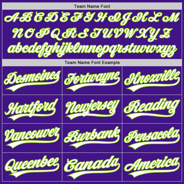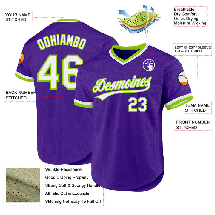 Custom Purple White-Neon Green Authentic Throwback Baseball Jersey