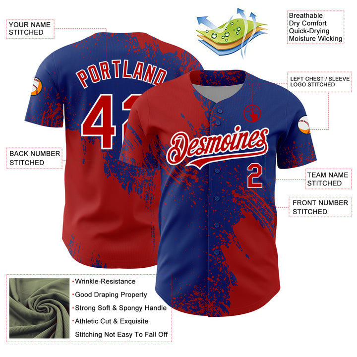 Custom Royal Red-White 3D Pattern Design Abstract Brush Stroke Authentic Baseball Jersey
