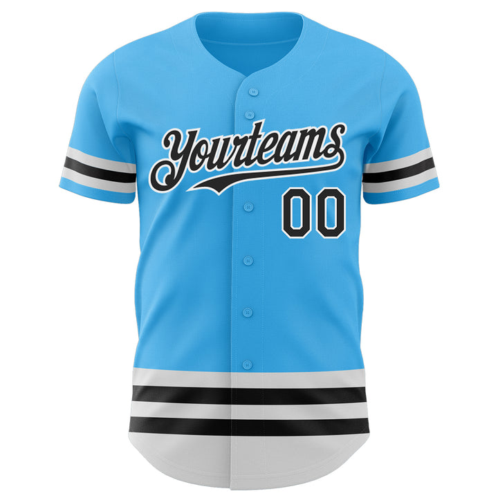 Custom Sky Blue Black-White Line Authentic Baseball Jersey