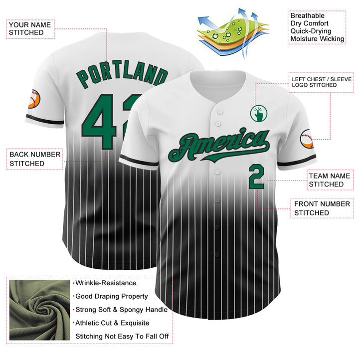 Custom White Pinstripe Kelly Green-Black Authentic Fade Fashion Baseball Jersey
