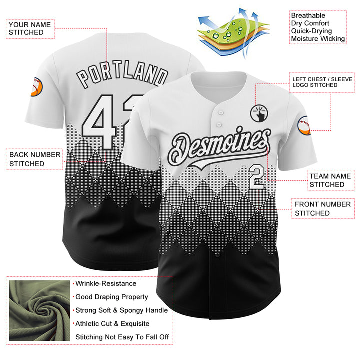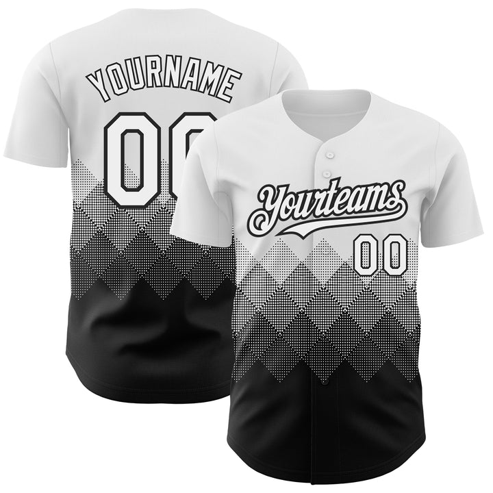 Custom White Black 3D Pattern Design Gradient Square Shapes Authentic Baseball Jersey