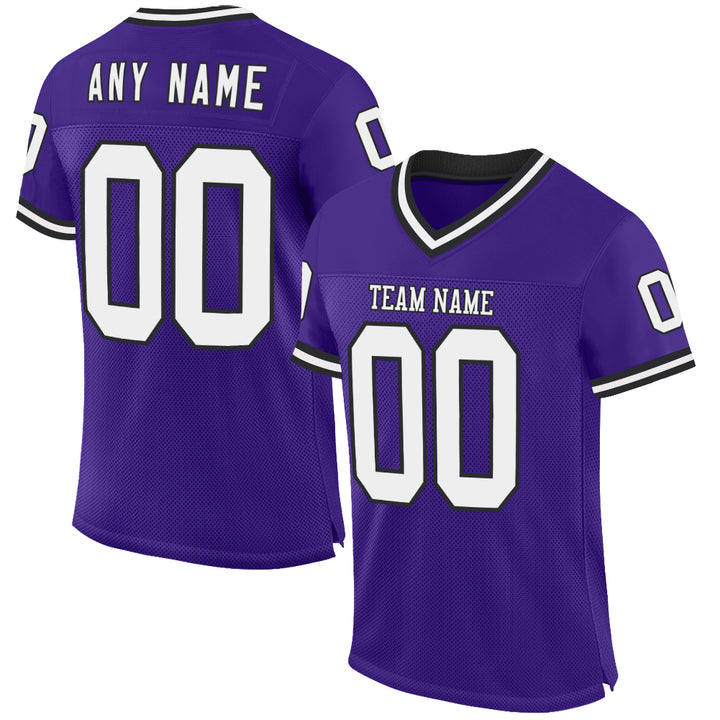 Custom Purple White-Black Mesh Authentic Throwback Football Jersey