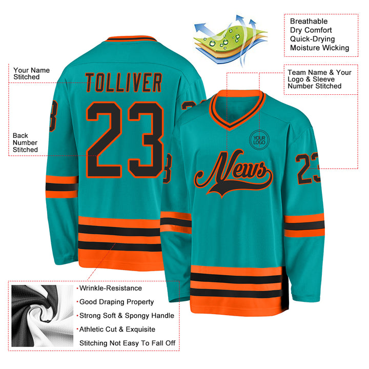 Custom Aqua Black-Orange Hockey Jersey
