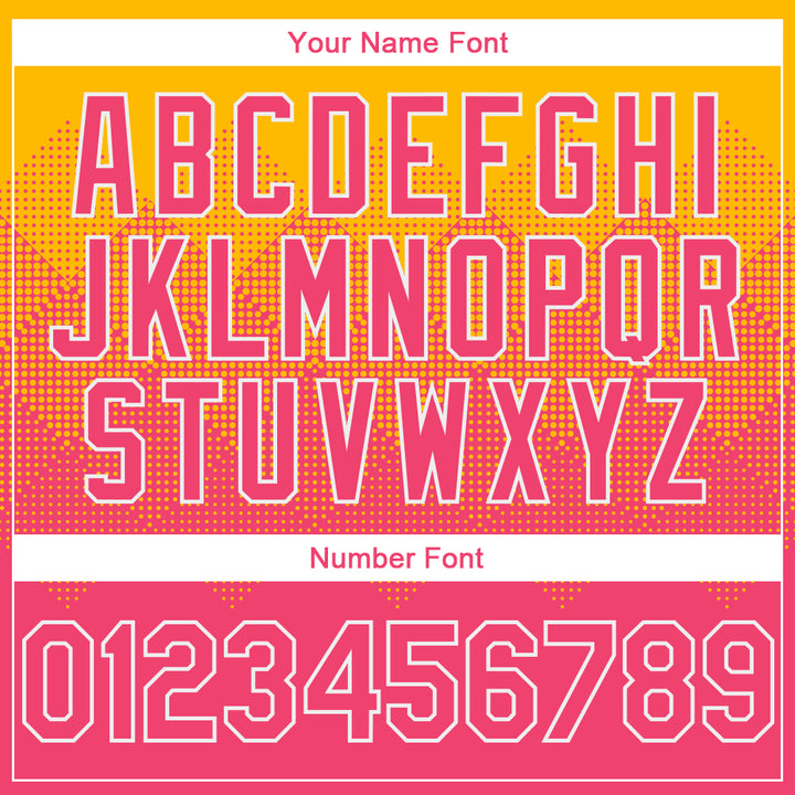 Custom Gold Neon Pink-White Gradient Square Shape 3D Pattern Design Bomber Full-Snap Varsity Letterman Hoodie Jacket