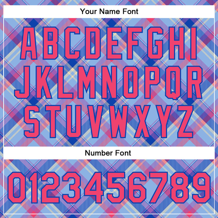 Custom Light Blue Neon Pink Thunder Blue-Cream Check Board 3D Pattern Design Bomber Full-Snap Varsity Letterman Jacket