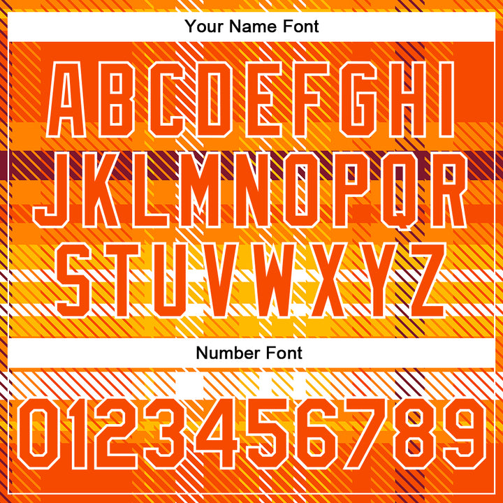 Custom Orange White Check Board 3D Pattern Design Bomber Full-Snap Varsity Letterman Jacket