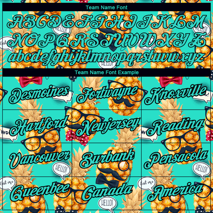 Custom Aqua Black 3D Pattern Design Hawaii Style Pineapple Performance T-Shirt