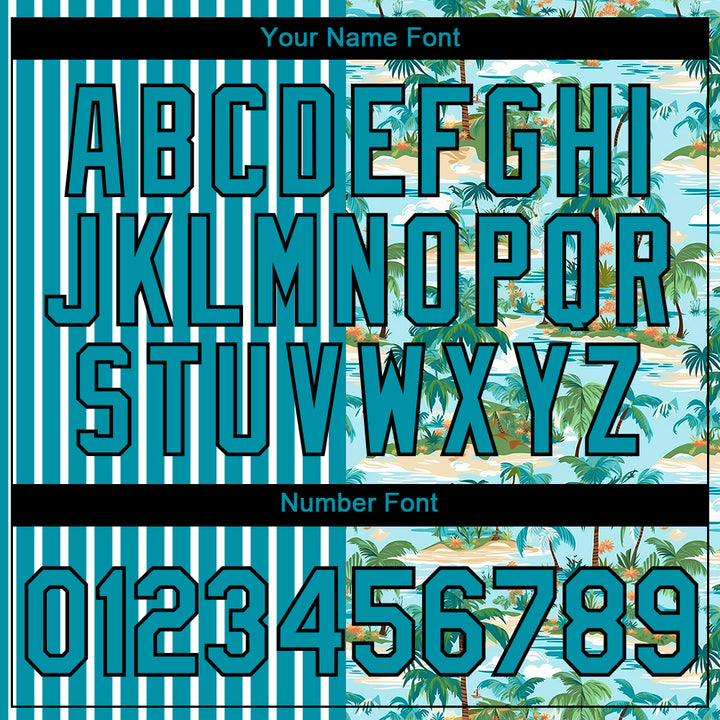 Custom Teal Black-White 3D Tropical Hawaii Beach And Palm Trees Performance T-Shirt