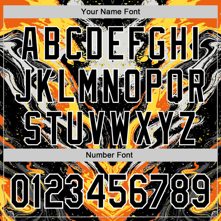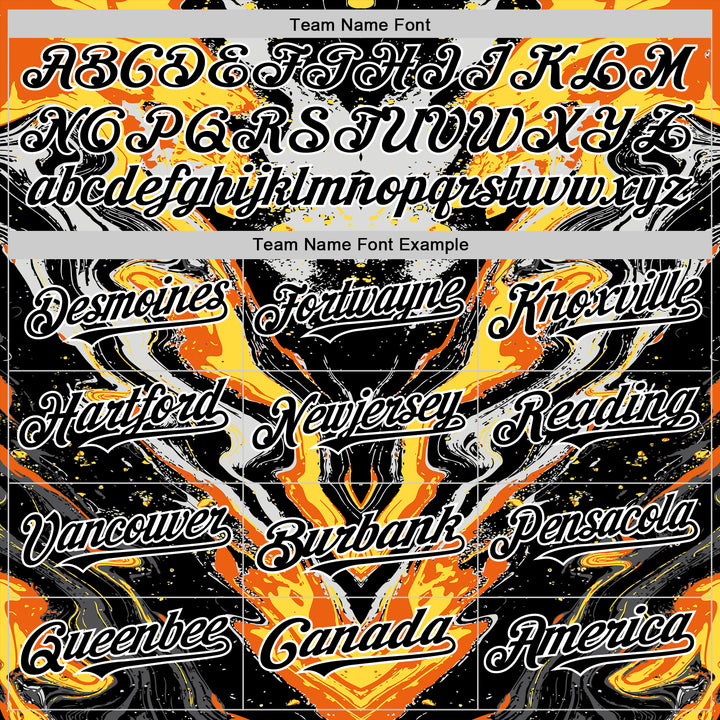 Custom Black Gray Orange Yellow-White 3D Pattern Design Rave Party Marble Lava Authentic Baseball Jersey